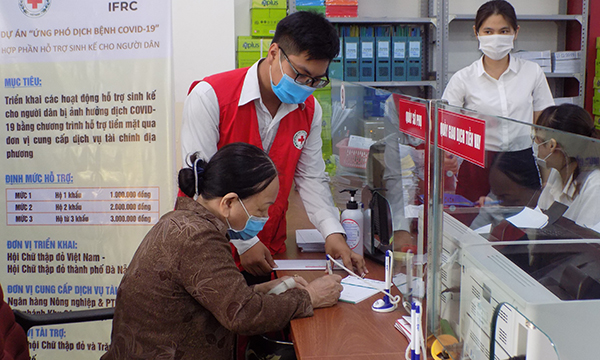 Cũng trong tháng 8 vừa qua, Hội Chữ thập đỏ TP.Đà Nẵng đã tổ chức cấp phát tiền mặt hỗ trợ sinh kế cho 104 hộ dân tại phường Nại Hiên Đông, phường An Hải Bắc, phường Thọ Quang (quận Sơn Trà, TP.Đà Nẵng). Tổng số tiền hỗ trợ là 302 triệu đồng.