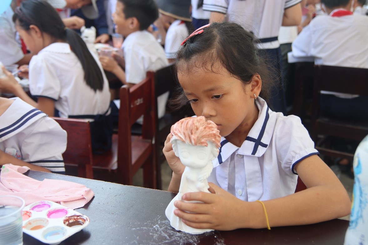Rồi những tiếng xuýt xoa đầy luyến tiếc hay niềm vui bất tận khi được nhận bánh kẹo, sữa từ các gian hàng trò chơi như tô tượng, câu hải sản, ném bóng, ném phi tiêu, ném vòng… được chuẩn bị kỹ lưỡng từ các tình nguyện viên nhóm Những người bạn….