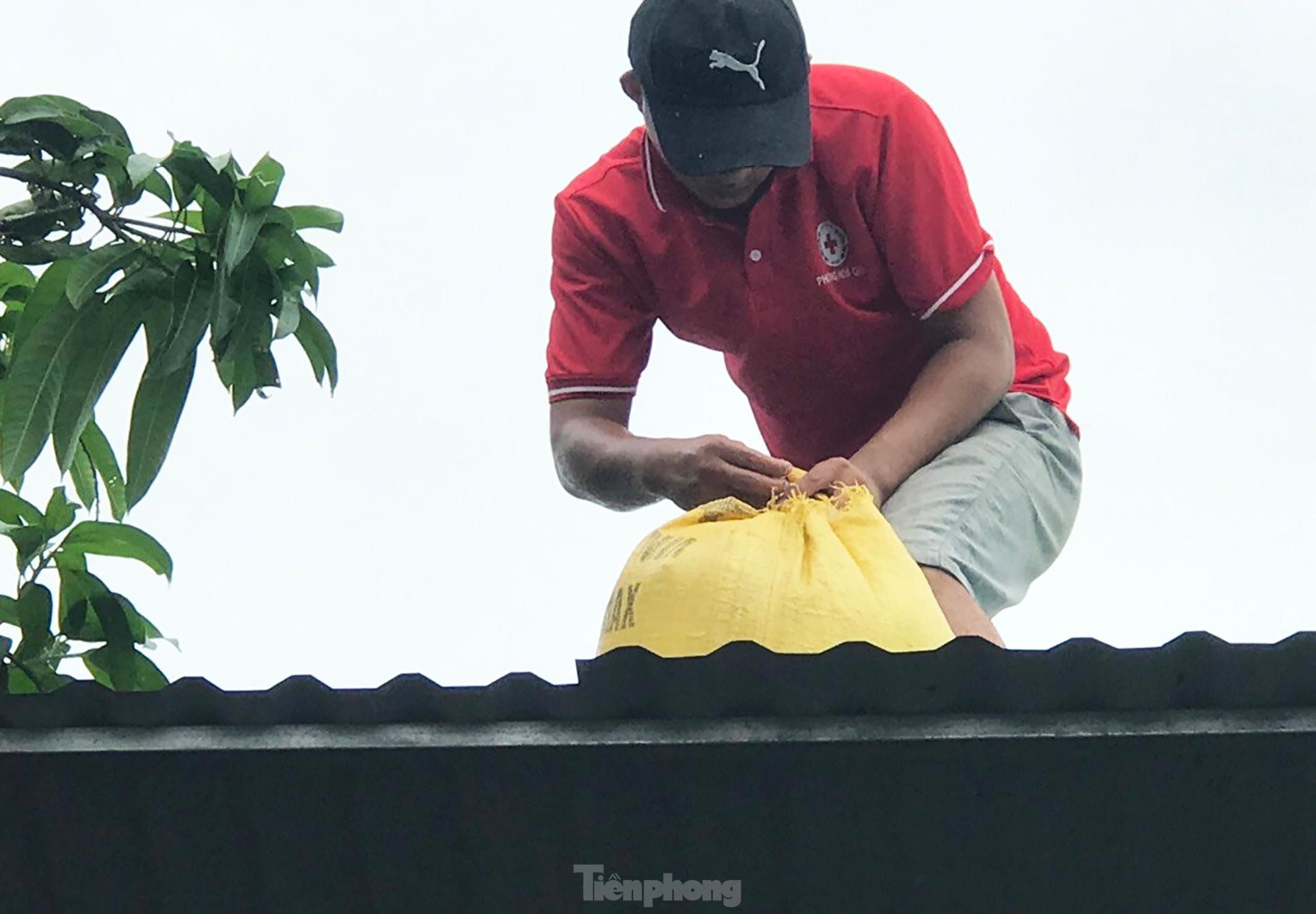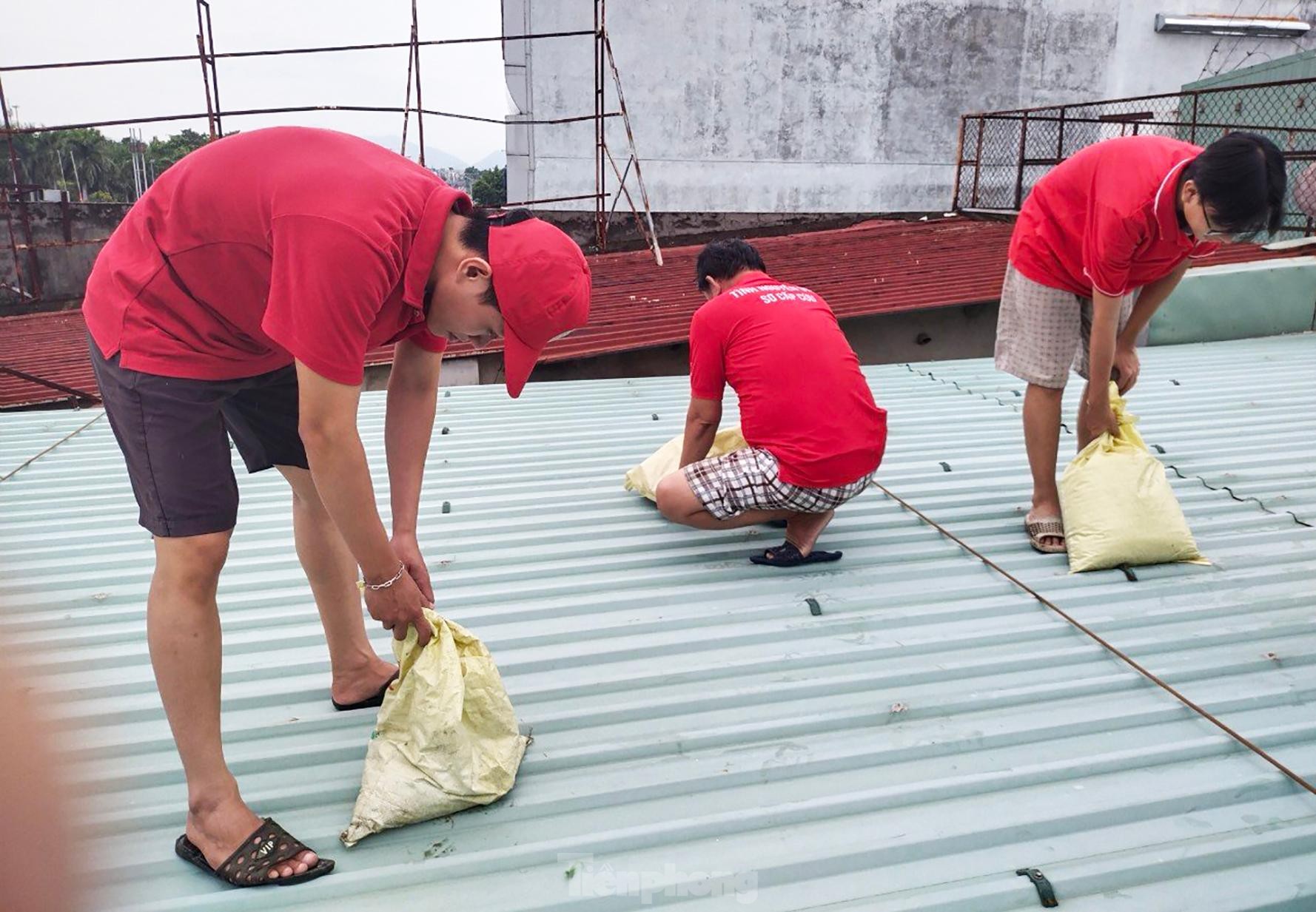 Gia đình 4 người của bà Ngô Thị Yến (60 tuổi) sống trong căn phòng trọ thuê chỉ chừng 20m2 tại phường Nại Hiên Đông (quận Sơn Trà). Từ sáng sớm, người con trai đã mang những bao tải cát lên chằng mái tôn và mang cây gỗ lớn để chắn trước cửa phòng, cột chặt để đề phòng gió lốc. Cả gia đình cũng chuẩn bị quần áo, vật dụng cần thiết để sẵn sàng di tản đến nơi kiên cố.