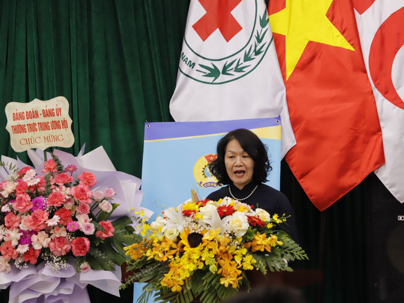 Bí thư Đảng đoàn, Chủ tịch Hội Chữ thập đỏ Việt Nam Bùi Thị Hoà phát biểu chỉ đạo Đại hội.