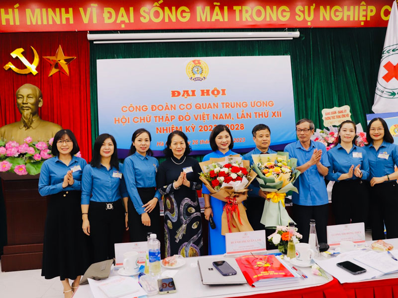 Sáng ngày 26/5, tại Hà Nội, Công đoàn Cơ quan Trung ương Hội Chữ thập đỏ Việt Nam long trọng tổ chức Đại hội Công đoàn Cơ quan Trung ương Hội Chữ thập đỏ Việt Nam lần thứ XII, nhiệm kỳ 2023-2028. Tham dự Đại hội có đồng chí Bùi Thị Hòa – Bí thư Đảng đoàn, Chủ tịch Trung ương Hội; Đồng chí Huỳnh Thị Xuân Lam – Phó Bí thư Đảng Đoàn, Phó Chủ tịch Trung ương Hội; Đồng chí Vũ Thanh Lưu – Phó Chủ tịch Trung ương Hội (dự trực tuyến tại điểm cầu thành phố Hồ Chí Minh); Đồng chí Phạm Văn Quân – Ủy viên Ban Thường vụ, Trưởng ban chính sách và Quan hệ lao động Công đoàn Viên chức Việt Nam và 93/107 đoàn viên Công đoàn cơ quan Trung ương Hội.