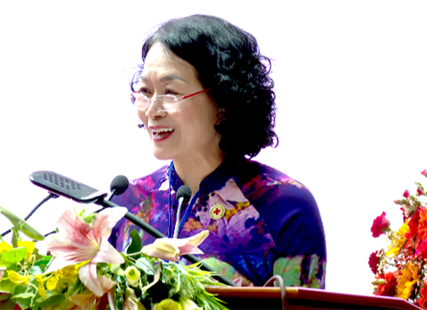 Đồng chí Bùi Thị Hòa – Chủ tịch Trung ương Hội Chữ thập đỏ Việt Nam phát biểu tại Đại hội