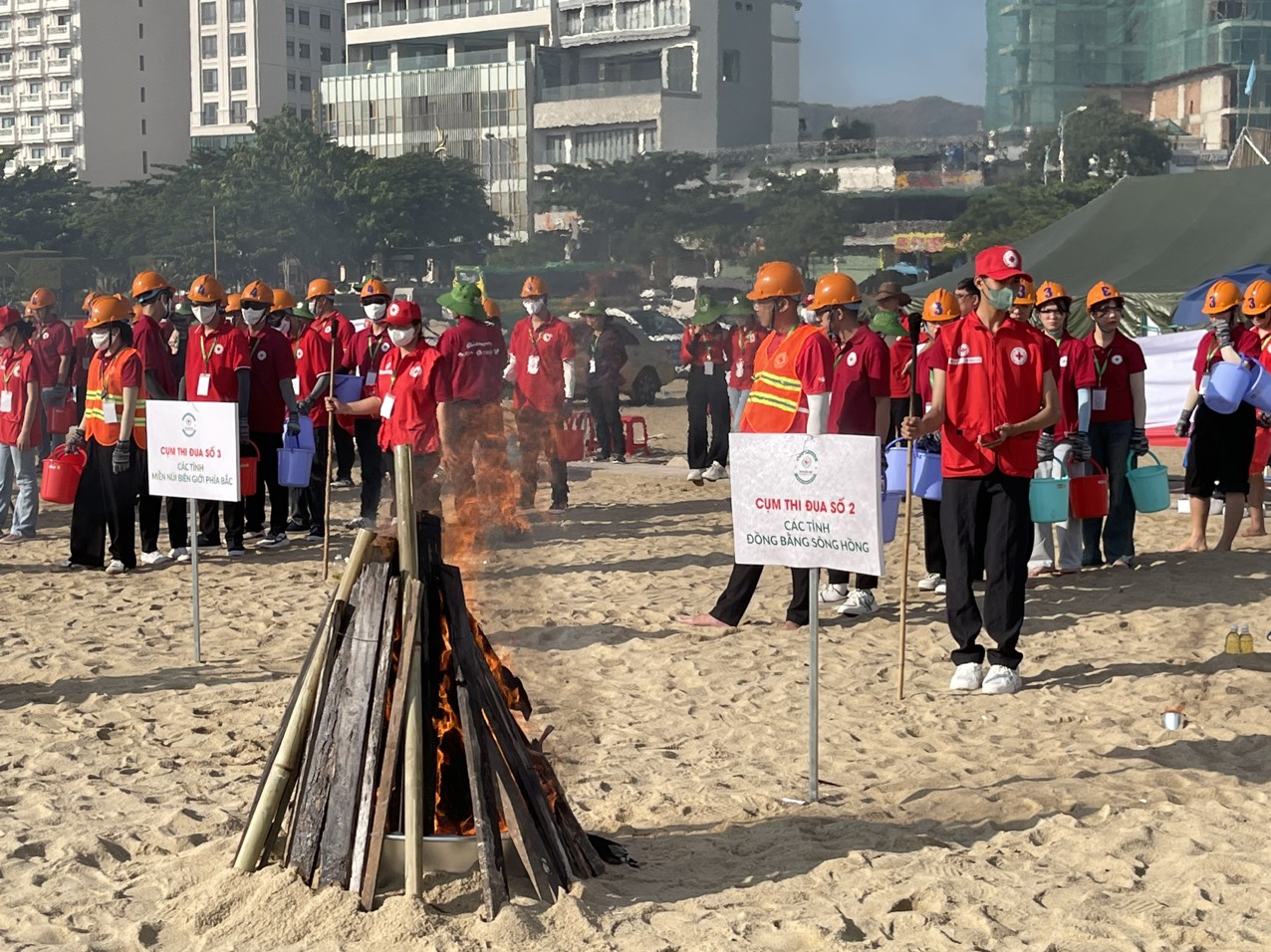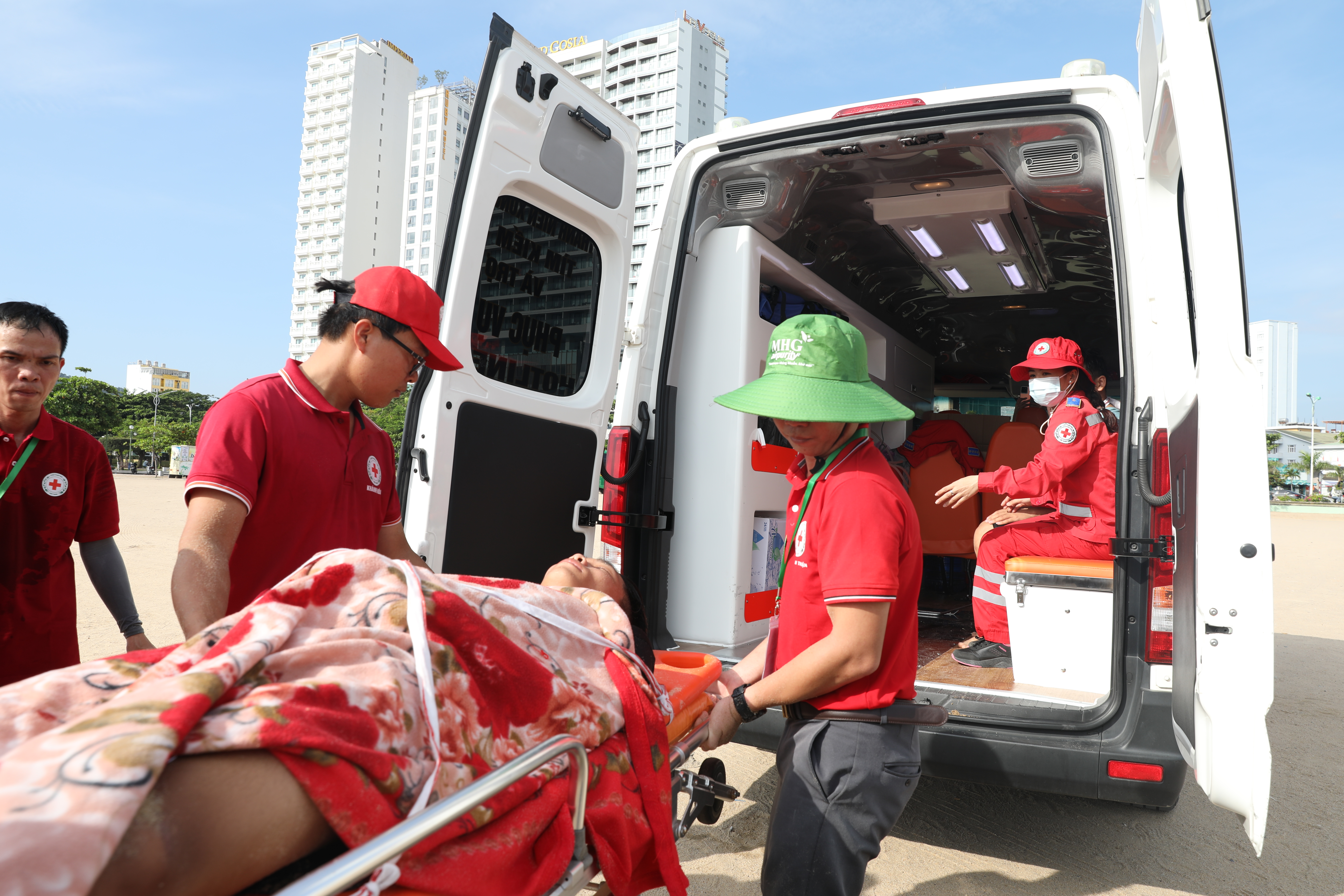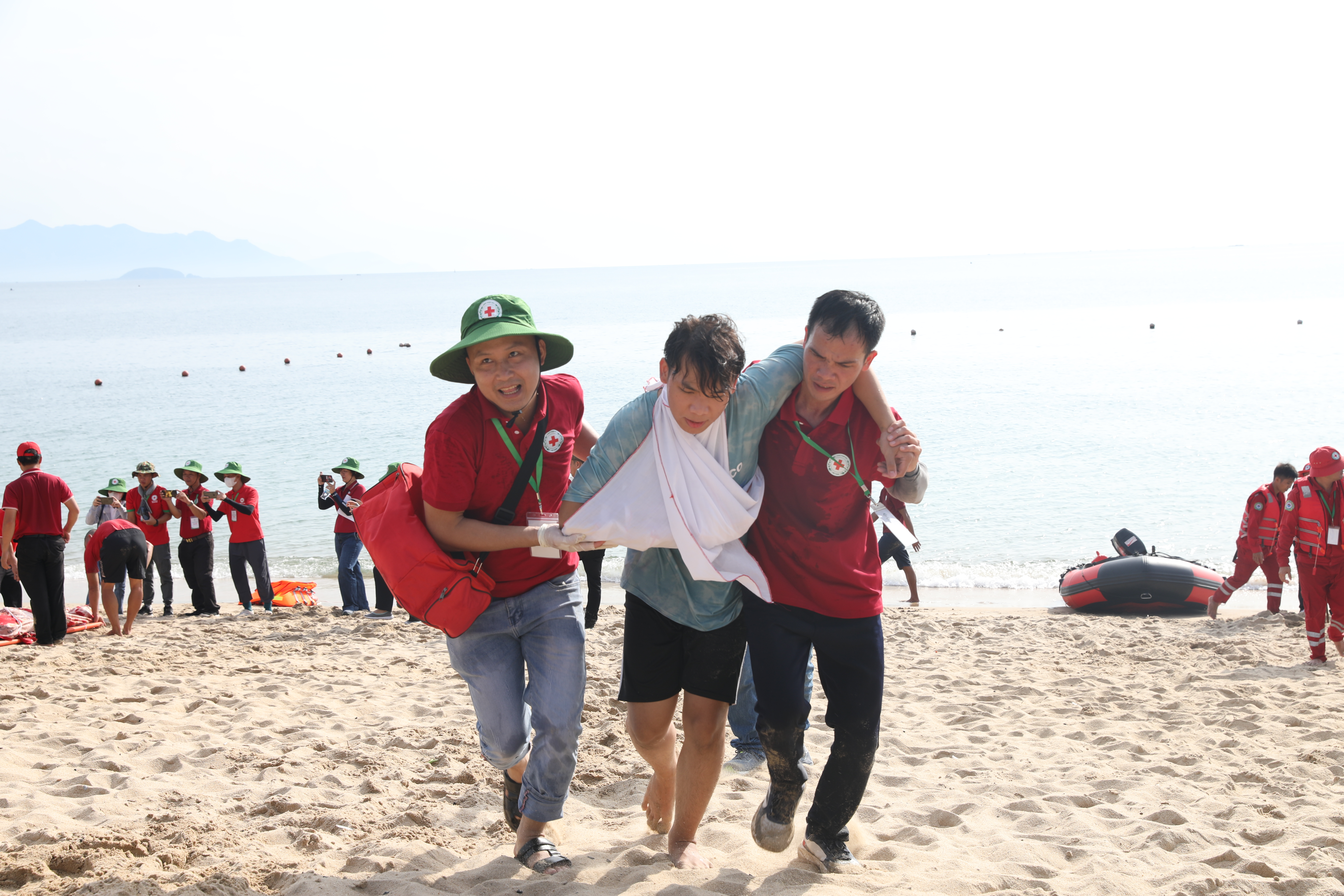Song song với các hoạt động kỷ niệm ngày Sơ cấp cứu thế giới, buổi diễn tập ứng phó thiên tai, thảm hoạ cũng đã diễn ra tại bãi biển sân bóng Thanh niên (TP.Nha Trang, Khánh Hòa) sáng ngày 14/8. Với tình huống giả định là triển khai ứng phó với bão số 5 năm 2024 vào sáng ngày 14/8, các đại biểu đã diễn tập 4 cảnh: