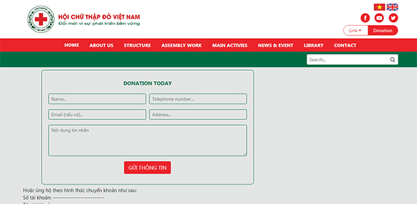 As a member of Red Cross and Red Crescent Movement, VNRC has cooperated with IFRC, Swiss Red Cross, to build an international fundraising platform. This platform is powered by iRaiser, a crowndfurnding solution for non-profit organization, widely trusted to use by numbers of organization, including RCRC Movement. This help online fundraising become simple, convinient and safe.