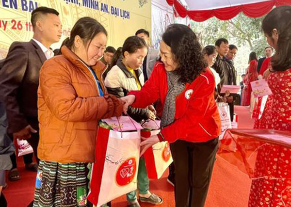 Chủ tịch Hội Chữ thập đỏ Việt Nam Bùi Thị Hòa tặng quà Tết cho hộ gia đình khó khăn tỉnh Yên Bái