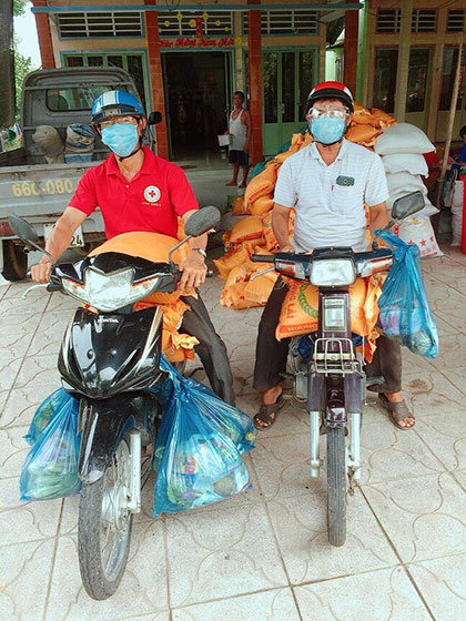 Bà Trần Kim Đổi, Phó Chủ tịch Hội Chữ thập đỏ huyện Lấp Vò chia sẻ: “Trong tình hình dịch bệnh phức tạp trên địa bàn huyện Lấp Vò tại 3 xã Tân Khánh Trung, Long Hưng B và xã Bình Thạnh Trung đã có ca dương tính trong cộng đồng, trước tình thế trên các cấp Hội Chữ thập đỏ trong huyện đã vận động tiền mặt, gạo, hàng hoá nhu yếu phẩm như: Nước tương, dầu ăn, mì và rau củ quả…; tổ chức gian hàng 0 đồng và phiên chợ 0 đồng, phát phiếu cho từng ấp qui định thời gian ngày giờ đến nhận. Điểm bị phong toả người dân không ra đường thì các tình nguyện viên Chữ thập đỏ mang quà đến nhà để hỗ trợ”.