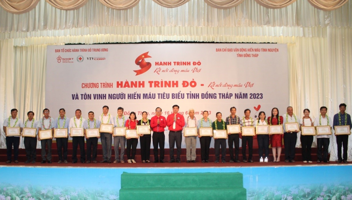 Tại Lễ tôn vinh, Ban Chỉ đạo vận động HMTN tỉnh đã tôn vinh khen thưởng 284 tập thể, gia đình và cá nhân tiêu biểu có thành tích xuất sắc trong hiến máu tình nguyện và tham gia vận động hiến máu tình nguyện tỉnh Đồng Tháp năm 2022. Trong đó, 2 gia đình có trên 100 lần hiến máu được nhận “Khánh vàng” và “Phù hiệu hiến máu” của Ban Chỉ đạo Quốc gia; 6 gia đình được nhận Khánh đồng và Phù hiệu hiến máu 50 lần.