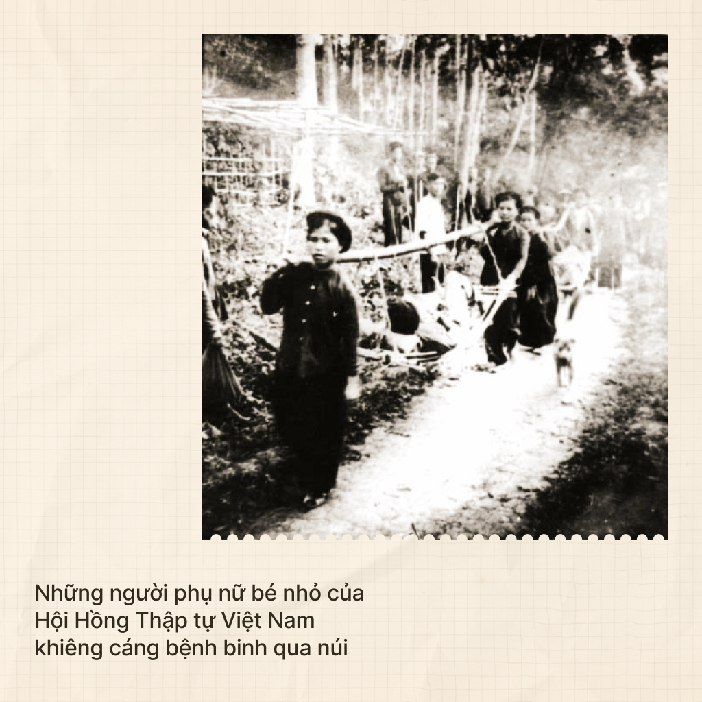 Cũng từ chiến dịch Điện Biên Phủ, hình ảnh những người phụ nữ bé nhỏ của Hội Hồng Thập tự Việt Nam (tiền thân của Hội Chữ thập đỏ Việt Nam) khiêng cáng bệnh binh trên những ngọn núi hiểm trở đã trở thành dấu ấn nhân đạo ấn tượng của Việt Nam.