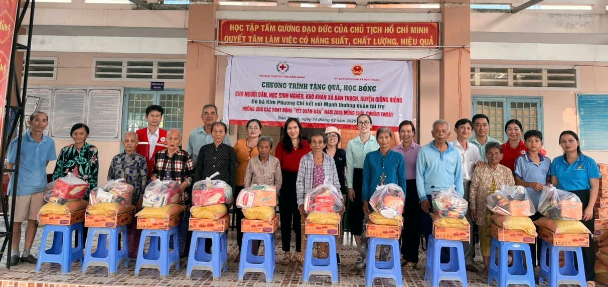 2. Bà Bùi Thuý Hào (người mặc áo đỏ đứng giữa), PCT Hội CTĐ tỉnh Kiên Giang trao quà cho bà con nghèo, khó khăn tại xã Bàn Thạch huyện Giồng Riềng tỉnh KG Published 18/02/2025 at 1212 × 572 in 2. Bà Bùi Thuý Hào (người mặc áo đỏ đứng giữa), PCT Hội CTĐ tỉnh Kiên Giang trao quà cho bà con nghèo, khó khăn tại xã Bàn Thạch huyện Giồng Riềng tỉnh KG ← Previous Next →
