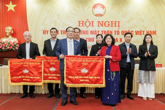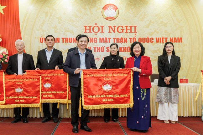 Tại Hội nghị, Chủ tịch Bùi Thị Minh Hoài đã trao tặng Cờ thi đua của UBTƯ MTTQ Việt Nam cho Ủy ban MTTQ Việt Nam các tỉnh, thành phố: TP Hồ Chí Minh, Bắc Ninh, Lạng Sơn, Hà Tĩnh, Đồng Tháp và 4 tổ chức thành viên ở Trung ương: Ủy ban Đoàn kết Công giáo Việt Nam; Hiệp hội Bệnh viện tư nhân Việt Nam; Hội Mỹ nghệ, Kim hoàn, Đá quý Việt Nam; Hội Bảo trợ Người khuyết tật và trẻ mồ côi Việt Nam nhằm ghi nhận những thành tích xuất sắc trong công tác Mặt trận năm 2025.