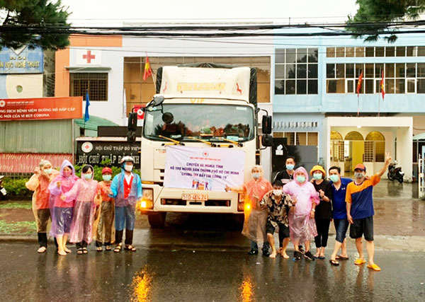 Mặc dù trời mưa tầm tã nhưng cán bộ Hội Chữ thập đỏ tỉnh, tình nguyện viên Câu Lạc bộ Máu Nóng Gia Lai và Câu Lạc bộ Ngôi nhà yêu thương (trực thuộc Hội Chữ thập đỏ tỉnh Gia Lai) vẫn đội mưa khuân vác hơn 7,4 tấn rau củ quả các loại (bí xanh, bí đỏ, su su, rau cải, rau rừng, rau ngót…) lên xe tải chuyển vào TP. Hồ Chí Minh hỗ trợ kịp thời cho người dân.