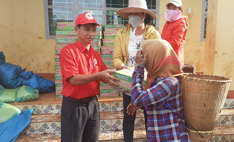 Hội Chữ thập đỏ huyện tặng quà cho người nghèo, đồng bào dân tộc thiểu số xã Ia Ko, huyện Chư Sê.