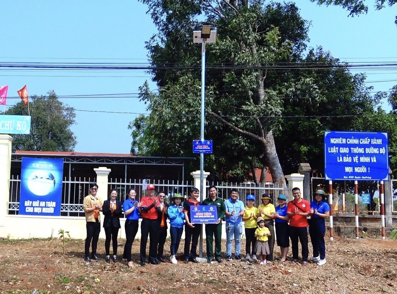 Đại diện các nhà tài trợ trao tặng công trình thắp sáng đường quê.