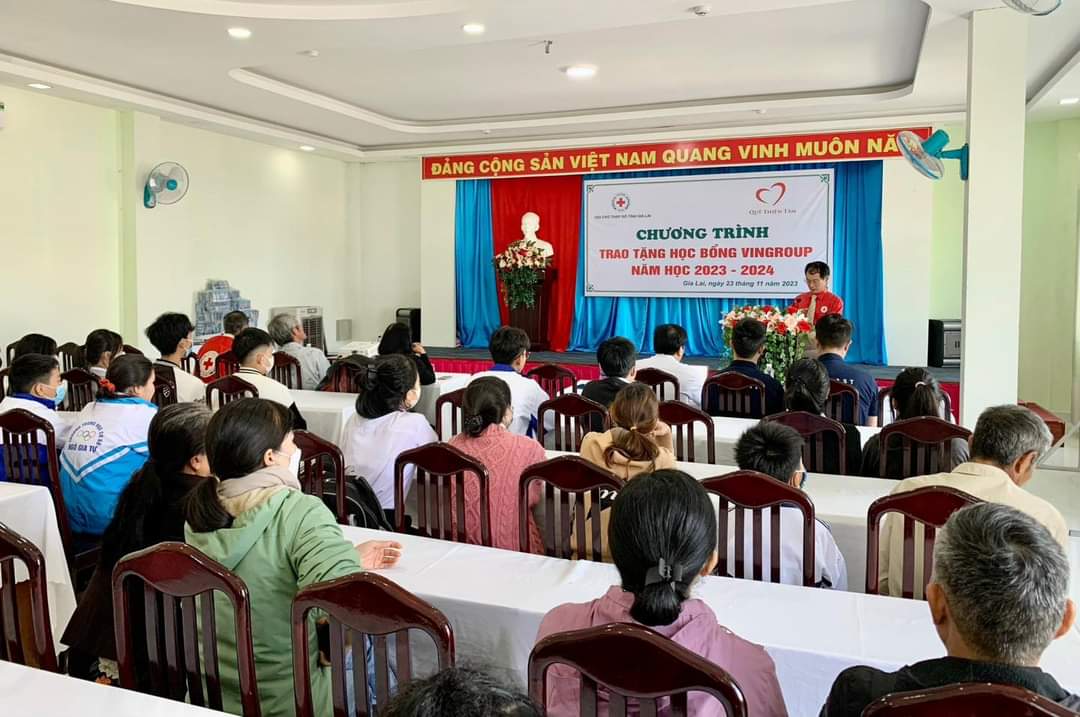 Ngày 23/11, tại thành phố Pleiku, tỉnh Gia Lai, Hội Chữ thập đỏ tỉnh Gia Lai phối hợp với Quỹ Thiện Tâm (Tập đoàn Vingroup) tổ chức chương trình trao tặng học bổng Vingroup cho học sinh, sinh viên khó khăn năm học 2023-2024.