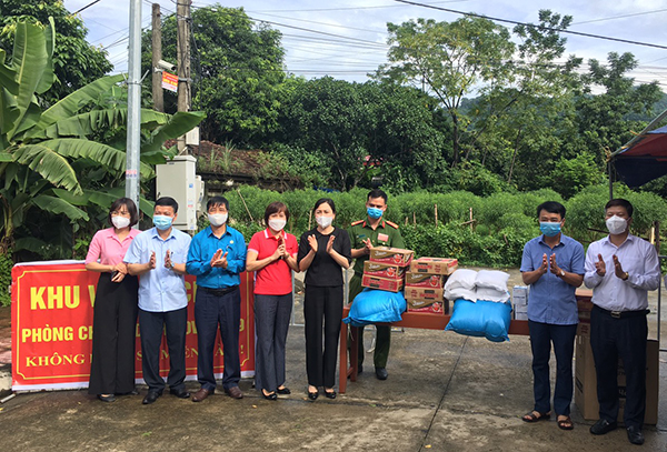 Lãnh đạo tỉnh và đại diện Liên đoàn lao động, Hội Chữ thập đỏ tỉnh trao hỗ trợ cho khu cách ly tại huyện Kim Bảng