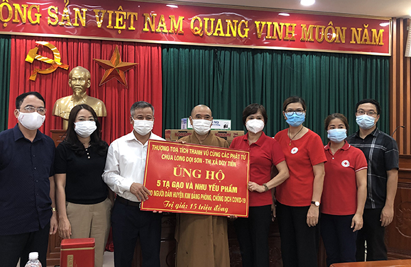 Thượng tọa Thích Thanh Vũ trao ủng hộ cho huyện Kim Bảng