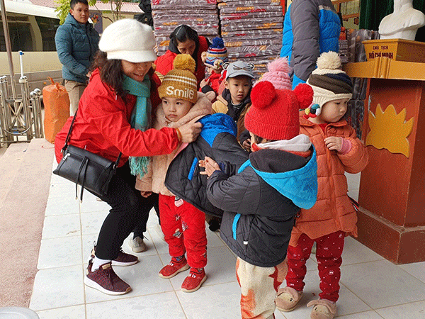 Hội Chữ thập đỏ huyện Thanh Trì tặng chăn, quần áo ấm cho các em học sinh tại Lạng Sơn