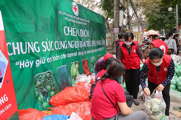 Bắt đầu từ ngày 24/2/2021, Hội Chữ thập đỏ thành phố Hà Nội đã phối hợp với Hội Chữ thập đỏ tỉnh Hải Dương tiêu thụ những mặt hàng nông sản như : Su hào, bắp cải, cà rốt, cà chua, ổi…tại địa điểm Cung Trí thức thành phố, số 1 Tôn Thất Thuyết, quận Cầu Giấy và số 61 Trần Quốc Vượng, quận Cầu Giấy.