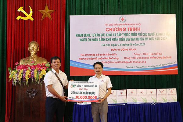 Tại chương trình, 200 người dân được các y, bác sỹ kiểm tra huyết áp, xét nghiệm đường huyết, mỡ máu, khám tổng quát, tai mũi họng, siêu âm… và mỗi người được nhận 1 phần quà với trị giá 867.000 đồng là một số thảo dược, thuốc bổ… Tổng trị giá quà tặng tại chương trình là hơn 173 triệu đồng. Số quà trên do Công ty TNHH Cốt Hải An, Công ty CP Công nghệ Y tế FACARE Quốc tế, Hội Chữ thập đỏ quận Cầu Giấy, quận Hai Bà Trưng và Chi hội tán trợ Chữ thập đỏ Thăng Long hỗ trợ.