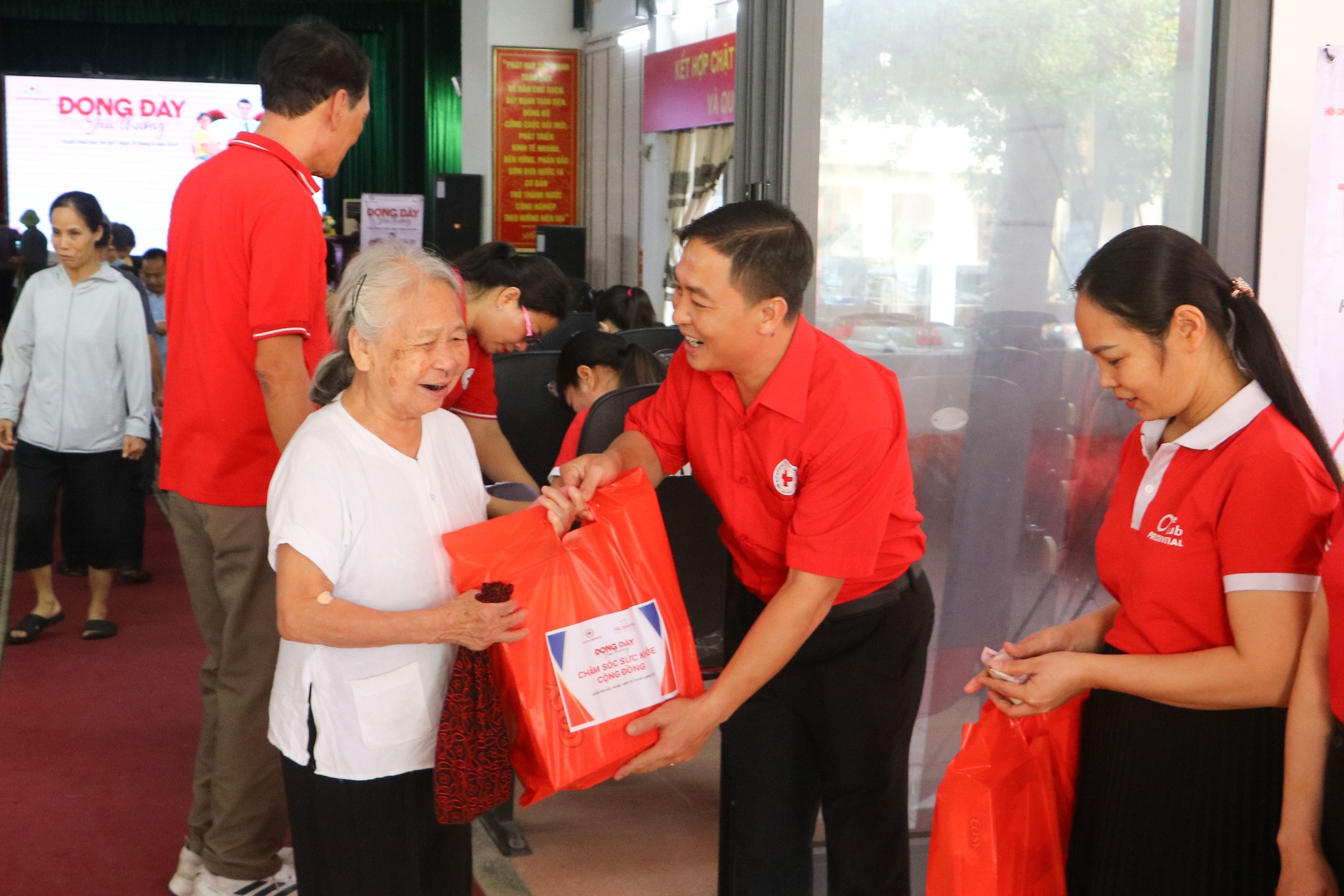 Trung tâm Y tế huyện Hoài Đức tiến hành khám cho người dân với các mục: Tim mạch, điện tim, nội tổng hợp, mắt, tai mũi họng, răng hàm mặt, đo huyết áp, xét nghiệm tiểu đường và tầm soát ung thư thông qua siêu âm ổ bụng, tuyến giáp, tuyến vú,.. Kết thúc phần khám, trên cơ sở kết quả xét nghiệm của người dân, đội ngũ y bác sỹ sẽ tư vấn biện pháp chăm sóc sức khỏe phù hợp cho từng người. Đặc biệt, Ban tổ chức còn gửi tặng mỗi người 01 phần quà gồm bánh, đường, sữa, thực phẩm tăng cường đề kháng.