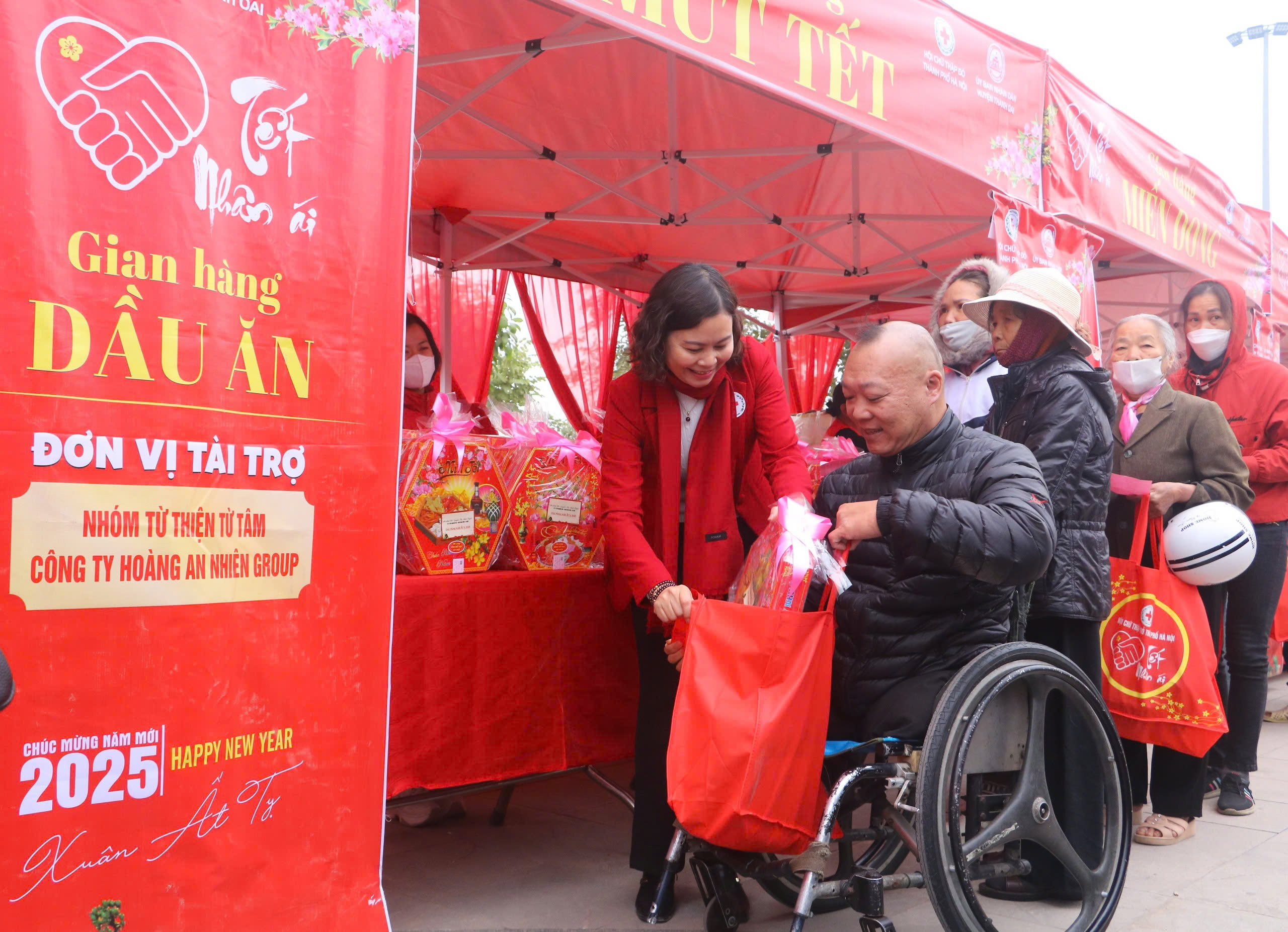 Tham dự Chợ Tết, 500 người dân được cấp phiếu mua hàng, với mỗi phiếu có trị giá 1.200.000 đồng để nhận hàng tại các gian hàng do ban tổ chức bố trí. Các gian hàng được bày biện, trang trí bắt mắt gồm nhu yếu phẩm, thực phẩm trong ngày tết từ gạo nếp, bánh chưng, miến dong đến dầu ăn, nước mắm, đồ gia dụng..Bên cạnh đó, gian hàng tặng quần áo mới, tặng áo dài, cắt tóc miễn phí thu hút đông đảo người dân đến tham gia và nhận quà.