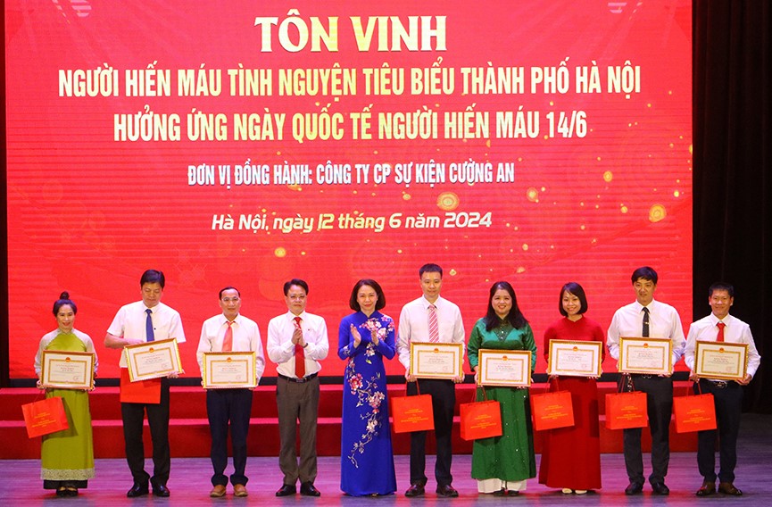 Ghi nhận sự đóng góp của các tập thể, cá nhân người hiến máu, dịp này, Hội Chữ thập đỏ thành phố tôn vinh 113 tập thể, gia đình, cá nhân tiêu biểu trong công tác vận động, hiến máu tình nguyện (12 gia đình và 7 cá nhân được nhận Bằng khen của Hội Chữ thập đỏ Việt Nam; 8 cá nhân nhận Bằng khen của UBND thành phố Hà Nội; 19 gia đình và 67 cá nhân nhận Giấy khen của Hội Chữ thập đỏ thành phố Hà Nội). Ngoài ra, Hội Chữ thập đỏ thành phố biểu dương nhiều đơn vị có thành tích nổi bật trong việc triển khai Tháng nhân đạo năm 2024.