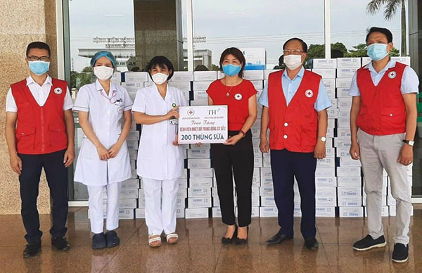 Hội Chữ thập đỏ Thành phố Hà Nội trao tặng sữa cho Bệnh viện Nhiệt đới Trung ương cơ sở 2.