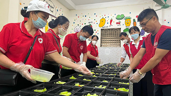 Hội Chữ thập đỏ Thành phố tiếp tục duy trì 02 bếp cơm (tại Trường PTCS Dân lập dạy trẻ câm điếc Hà Nội và Cơm nhà Thiện Tâm) và phối hợp Hội Chữ thập đỏ quận Tây Hồ, Trung đoàn Cảnh sát đặc nhiệm và Công ty CP Thương mại DV Phúc Hoàng An khai trương bếp cơm từ thiện trao tặng 3.000 suất cơm cho bệnh nhân đang điều trị tại Bệnh viện Ung Bướu Hà Nội trong năm 2022. Hội Chữ thập đỏ các cấp trao tặng gần 76 nghìn suất ăn miễn phí với trị giá trên 1,8 tỷ đồng cho các bệnh nhân đang điều trị tại các bệnh viện Thanh Nhàn, Viện Huyết học truyền máu Trung ương, xóm trọ bệnh viện K3 Tân Triều.