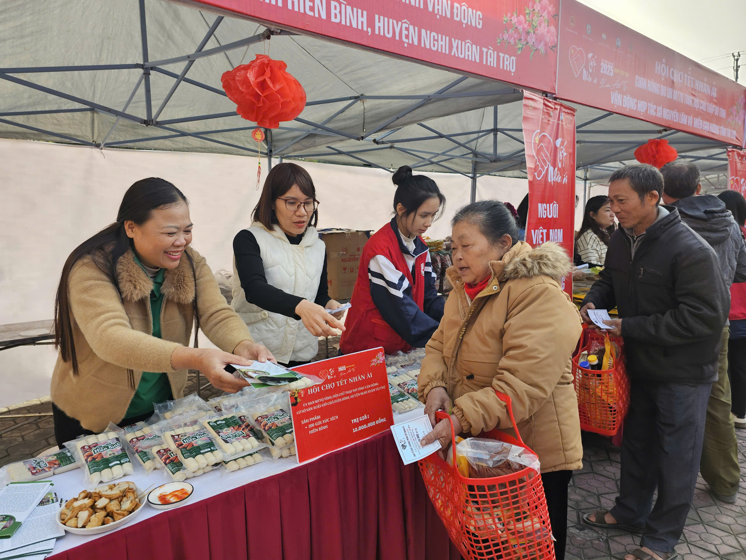 Tiếp nối chương trình, “Hội chợ Tết Nhân Ái” đã được tổ chức với sự tham gia của 300 người dân có hoàn cảnh khó khăn. Các gian hàng trưng bày sản phẩm đạt chuẩn OCOP, nhằm thúc đẩy cuộc vận động “Người Việt Nam ưu tiên dùng hàng Việt Nam”. Tại đây 300 người dân có hoàn cảnh khó khăn trên địa bàn huyện Nghi Xuân được nhận các mặt hàng Tết thiết yếu, theo nhu cầu thực tế của gia đình với trị giá 500.000 đồng một người. Phiên chợ không chỉ hỗ trợ vật chất mà còn động viên tinh thần đối với họ, phần nào giúp các gia đình đón một cái Tết với mâm cơm đoàn viên đủ đầy. Ngoài ra người dân còn được tham gia các hoạt động vui tết như: Gói bánh chưng, tặng thư pháp, cắt tóc miễn phí tham gia các trò chơi có thưởng tạo nên không gian tết rộn ràng, ý nghĩa, tràn đầy yêu thương.