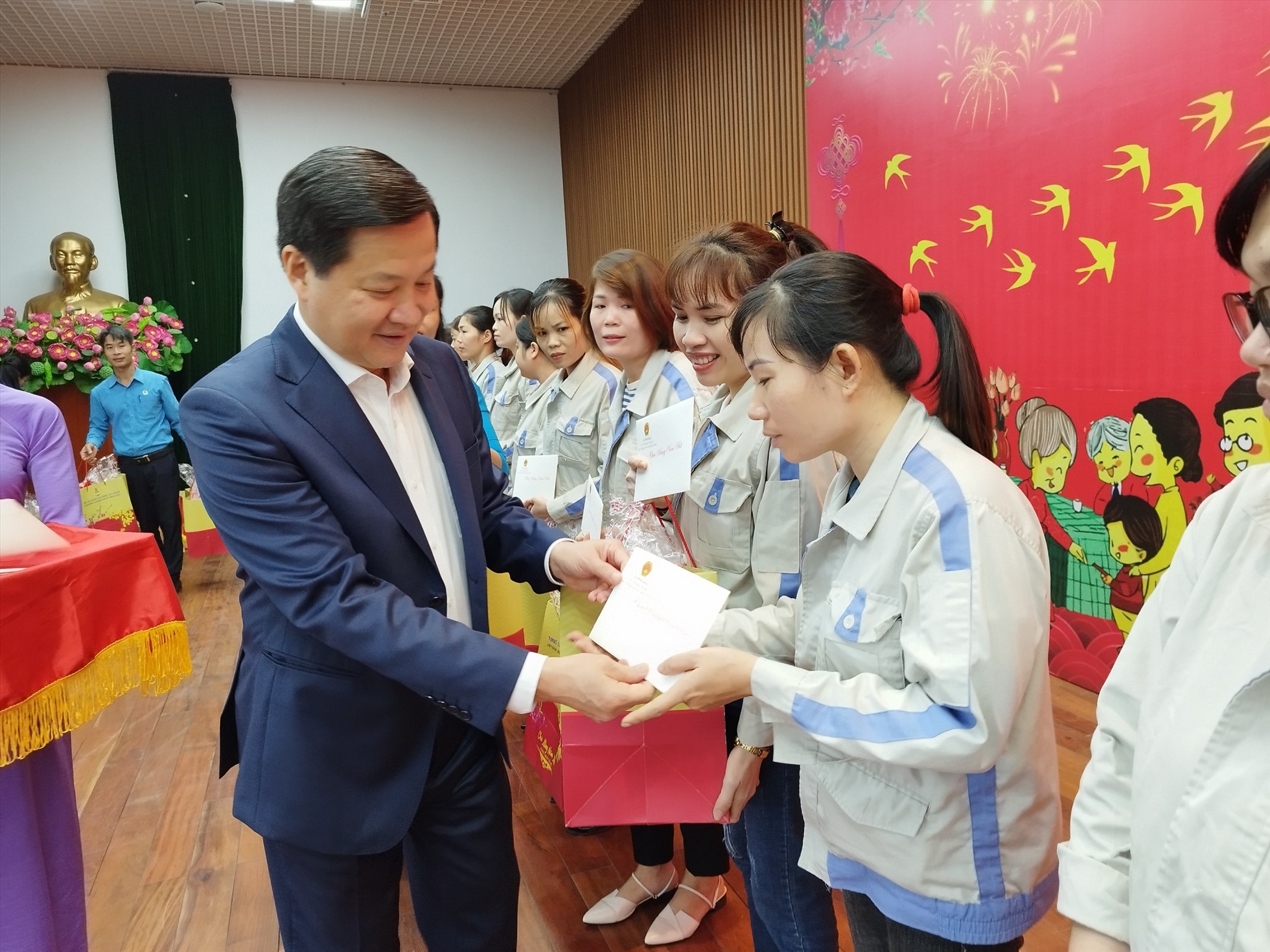 Tại chương trình, đã trao tặng 40 suất quà cho công nhân, lao động hoàn cảnh khó khăn, mỗi suất trị giá 2,5 triệu đồng; 160 suất còn lại các cấp công đoàn sẽ trực tiếp đi trao cho công nhân lao động có hoàn cảnh khó khăn.