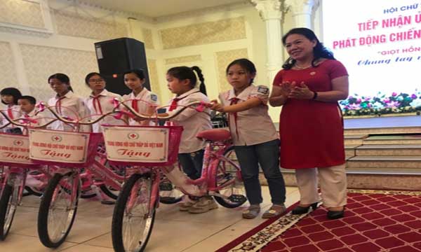Tại buổi lễ, Hội CTĐ Việt Nam đã trao tặng 20 xe đạp cho 20 học sinh nghèo vượt khó, đại diện lãnh đạo tỉnh trao 1 ngôi nhà cho cho hộ nghèo và 10 suất quà cho đối tượng có hoàn cảnh khó khăn.