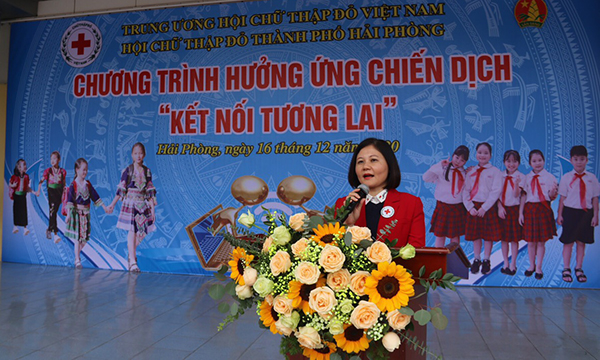 Phát biểu chỉ đạo Chương trình, bà Trần Thị Hồng An – Phó Chủ tịch Hội Chữ thập đỏ Việt Nam nhấn mạnh: Hải Phòng là tỉnh đầu tiên được lựa chọn trong các cấp Hội Chữ thập đỏ của cả nước tiên phong trong việc tổ chức Chương trình hưởng ứng Chiến dịch “Kết nối tương lai” để huy động cộng đồng quyên góp máy tính bảng và điện thoại thông minh để tặng cho các em học sinh nghèo hai tỉnh Yên Bái và Phú Thọ.