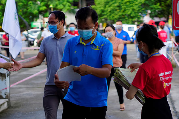 Người dân đến tham gia hiến máu đều thực hiện khai báo y tế.