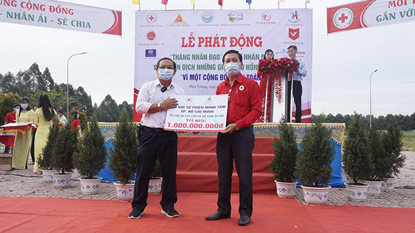 Tiếp nhận ủng hộ tại lễ phát động “Tháng nhân đạo” .