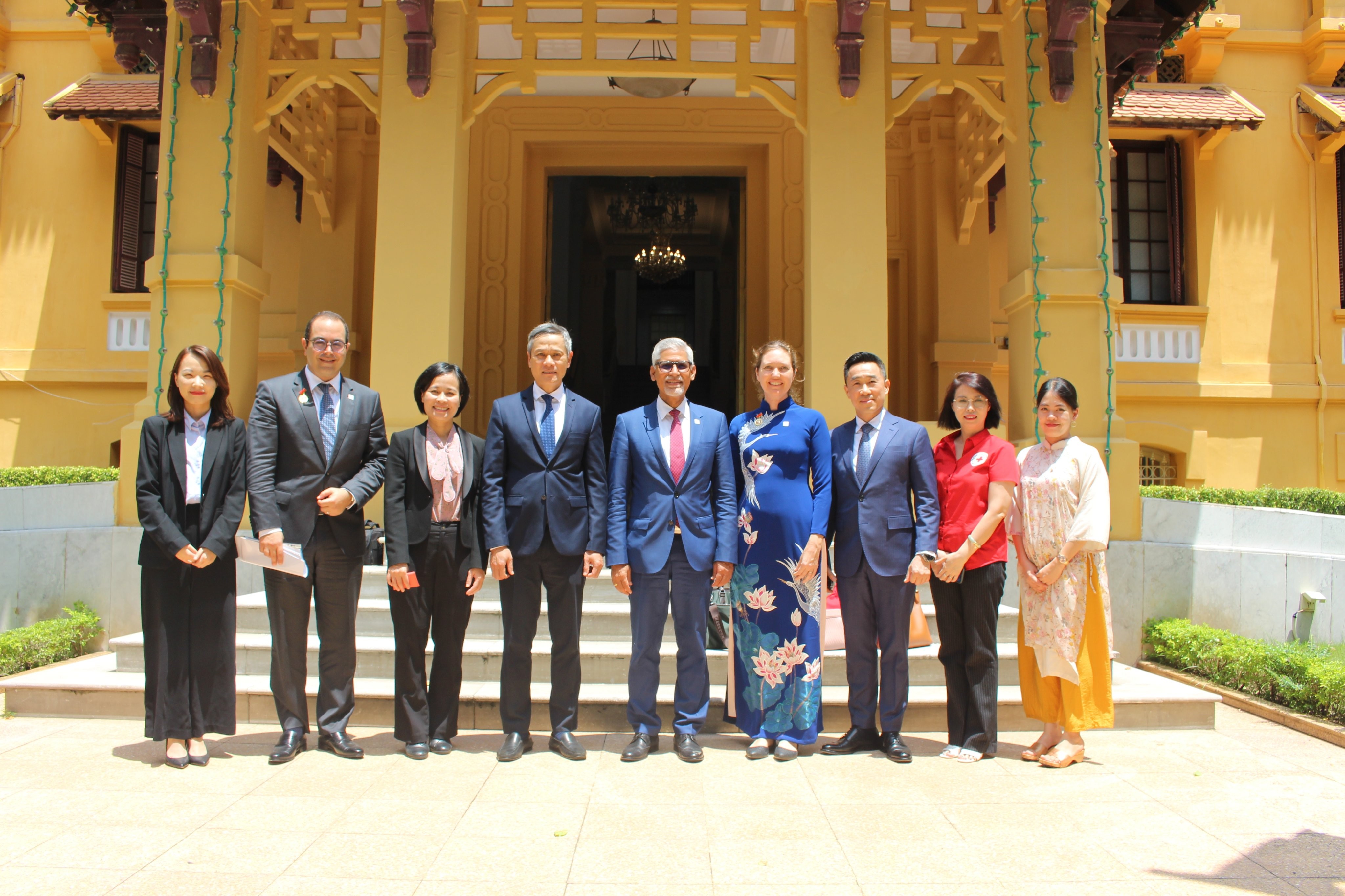 Tại buổi làm việc ông Jagan Chapagain cũng thông tin thêm vào tháng 5 năm 2022, Hiệp hội quốc tế đã ký Thoả thuận hợp tác với Ban Thư ký ASEAN về ứng phó trong tình huống thiên tai, thảm hoạ và dịch bệnh. Ông đề nghị Chính phủ quan tâm hỗ trợ các hoạt động nhân đạo trong nước và quốc tế, thông qua Hội Chữ thập đỏ Việt Nam. Chính vì thế, tại buổi làm việc này, Hiệp Hội cũng đề xuất Chính phủ Việt Nam và Bộ Ngoại giao xem xét, tạo điều kiện cho Hội Chữ thập đỏ Việt Nam có cơ chế được tiếp nhận các nguồn kinh phí viện trợ quốc tế để triển khai các hoạt động nhân đạo tại Việt Nam, đặc biệt là khi có thiên tai thảm hoạ lớn.