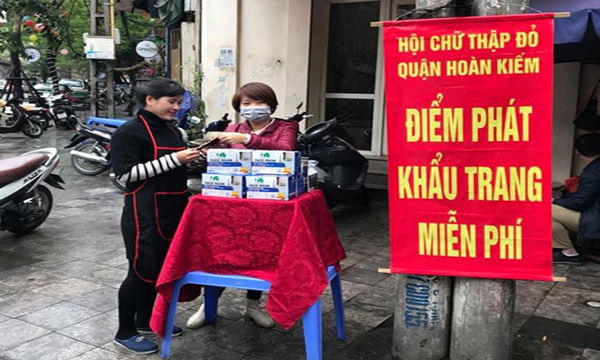 Với phương châm “Chữ thập đỏ- Vì mọi người, ở mọi nơi”, ngay từ khi Thủ tướng Chính phủ công bố dịch bệnh,những điểm phát khẩu trang, một số trang thiết bị phòng chống dịch như nước rửa tay, dung dịch khử khuẩn… miễn phí được các cấp Hội Chữ thập đỏ trên địa bàn thành phố lập ra, như tại khu vực Sân bay Nội Bài, bãi rác Nam Sơn, huyện Sóc Sơn; khu chợ Ninh Hiệp, huyện Gia Lâm; các bệnh viện, các khu chợ dân sinh trên địa bàn quận Hoàng Mai, huyện Đông Anh, huyện Thanh Oai; huyện Thanh Trì; ngay tại trụ sở làm việc của Hội như Hội Chữ thập đỏ quận Hoàn Kiếm, quận Hà Đông… Theo đó, từ ngày 31/1 đến ngày 4/2/2020, các cấp Hội Chữ thập đỏ trên địa bàn thành phố đã phát tặng miễn phí 65.000 khẩu trang, 60.000 tờ rời tuyên truyền và một số trang thiết bị để phòng chống dịch như nước súc miệng, cồn, nước rửa tay, dung dịch khử khuẩn.