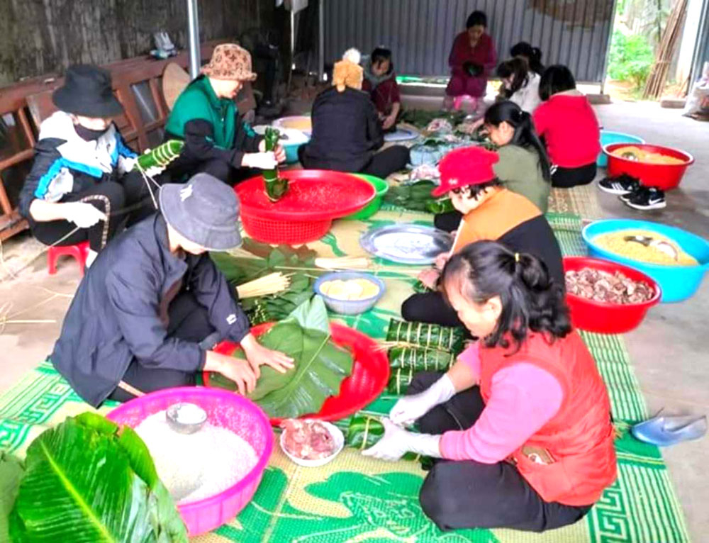 30 tình nguyện viên của Hội Chữ thập đỏ thị trấn Ba Chẽ tham gia gói bánh chưng.