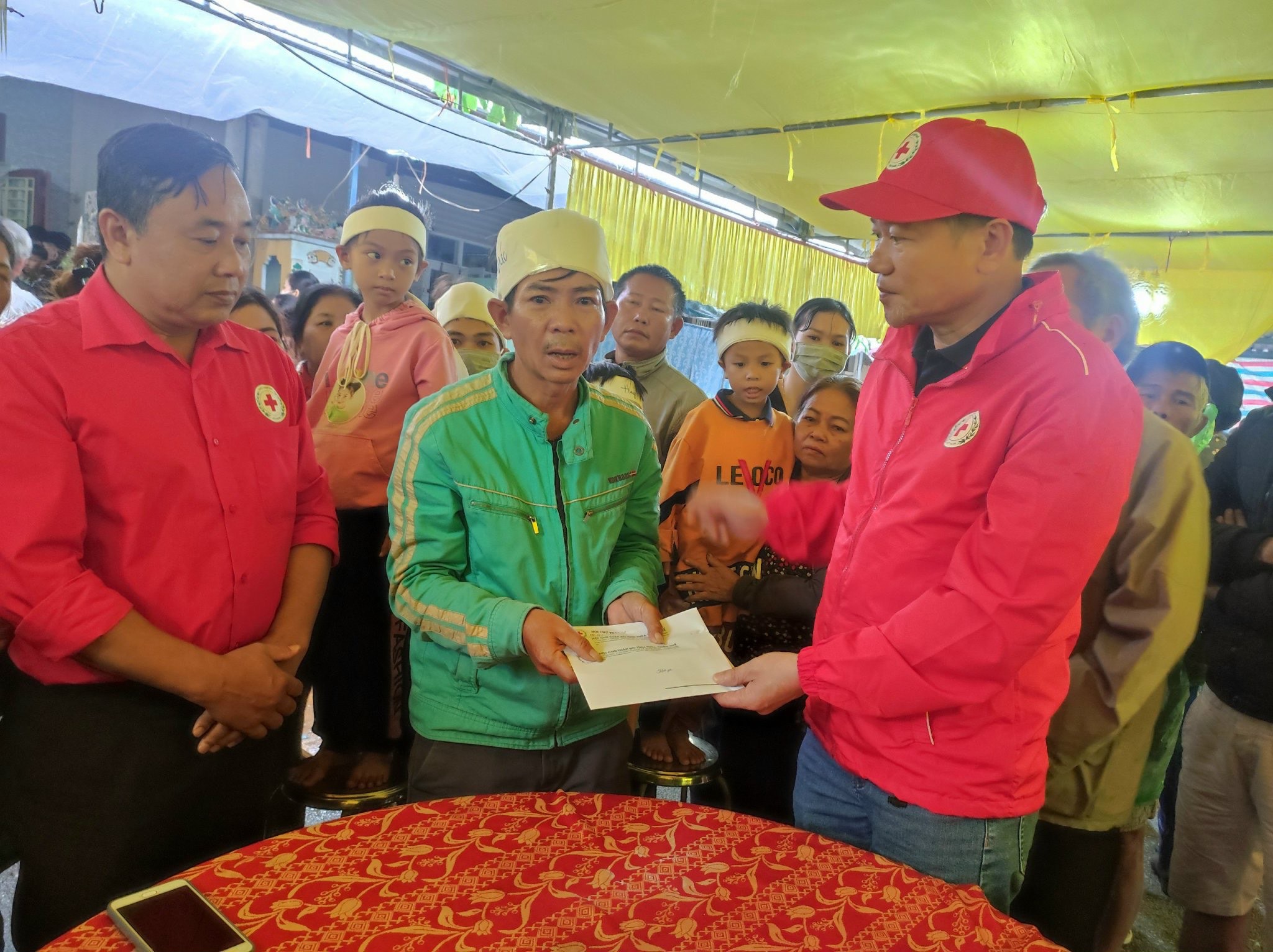 Tại buổi thăm, ông Trần Văn Nhân, Phó Chủ tịch Hội Chữ thập đỏ tỉnh, đã động viên và chia buồn sâu sắc đến gia đình ông Nguyễn Đình Đức. Đồng thời, đoàn đã trao số tiền hỗ trợ 12 triệu đồng cho gia đình, trong đó có 10 triệu đồng từ Trung ương Hội CTĐ Việt Nam và 2 triệu đồng từ Hội CTĐ thành phố Huế.