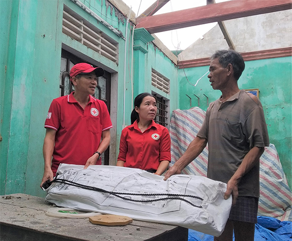 Hội Chữ thập đỏ thăm hỏi và trao bộ dụng cụ sửa nhà hỗ trợ người dân tại xã Quảng An, huyện Quảng Điền, Thừa Thiên Huế chiều ngày 20/9/2020. Đây là những hộ dân có nhà bị có nhà bị hư hỏng sau bão số 5