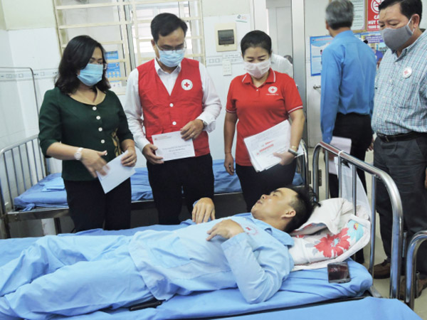 Đoàn thăm hỏi nạn nhân bị thương đang điều trị tại Bệnh viện Đa khoa huyện Trảng Bom và Bệnh viện Đa khoa Thống Nhất. Ảnh: Lưu Tiến Dũng