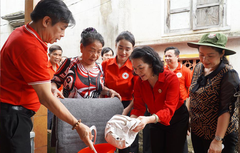Tại đây, Trung ương Hội Chữ thập đỏ Việt Nam trao hỗ trợ 200 triệu đồng và 200 thùng hàng gia đình (trị giá hơn 120 triệu đồng) cho các hộ gia đình có nhà bị tốc mái, nhà bị hư hỏng, thiệt hại nặng về hoa màu và sinh kế do bão Noru gây ra.