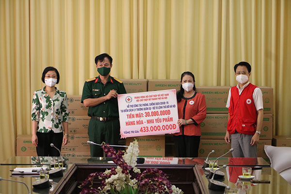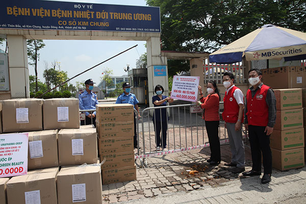 Cũng trong ngày 14/5, PGS.TS Nguyễn Thị Xuân Thu – Chủ tịch Hội Chữ thập đỏ Việt Nam đã trao hỗ trợ hàng hoá, nhu yếu phẩm trị giá 460 triệu đồng tới Bệnh viện Nhiệt đới Trung ương cơ sở 2 nhằm phục vụ công tác phòng, chống dịch Covid-19.