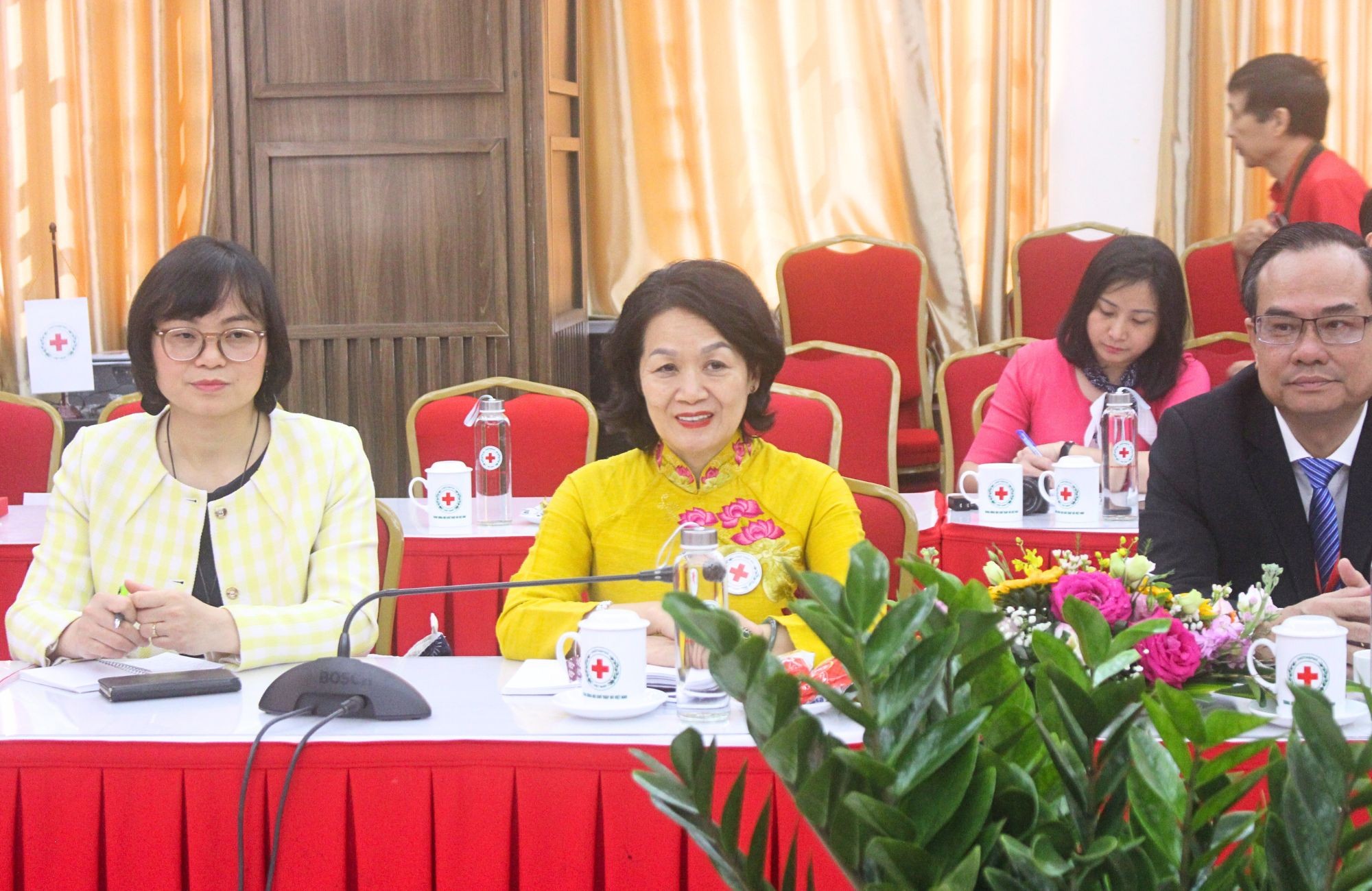 Tham dự buổi làm việc về phía Hội Chữ thập đỏ Việt Nam có bà Bùi Thị Hoà – Chủ tịch Hội Chữ thập đỏ Việt Nam, ông Vũ Thanh Lưu – Phó Chủ tịch Hội Chữ thập đỏ Việt Nam, ông Nguyễn Đức Khải – Chánh văn phòng, ông Nguyễn Vĩnh Hòa – Phó Trưởng ban Đối ngoại và Phát triển Hội Chữ thập đỏ Việt Nam.