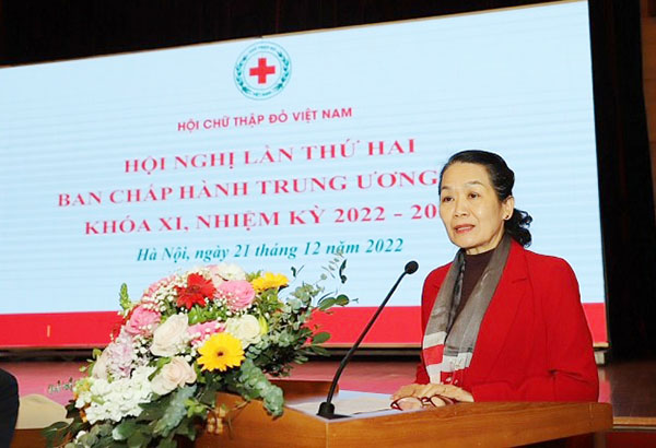 Phát biểu khai mạc Hội nghị, bà Bùi Thị Hoà – Chủ tịch Trung ương Hội Chữ thập đỏ Việt Nam nhận định, năm 2022, công tác Hội và phong trào Chữ thập đỏ tiếp tục nhận được sự quan tâm lãnh đạo, chỉ đạo của Đảng, Nhà nước, của cấp ủy Đảng, chính quyền địa phương; các tổ chức, doanh nghiệp và nhân dân hưởng ứng và ủng hộ các phong trào và cuộc vận động nhân đạo.