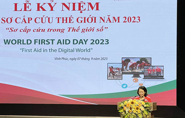 Ngày 7/9, tại Thành phố Vĩnh Yên, tỉnh Vĩnh Phúc, Trung ương Hội Chữ thập đỏ Việt Nam phối hợp với Uỷ ban nhân dân tỉnh Vĩnh Phúc tổ chức Lễ kỷ niệm Ngày Sơ cấp cứu thế giới năm 2023 với chủ đề “Sơ cấp cứu trong thế giới số” và diễn tập tình huống sơ cấp cứu tai nạn giao thông đường bộ.