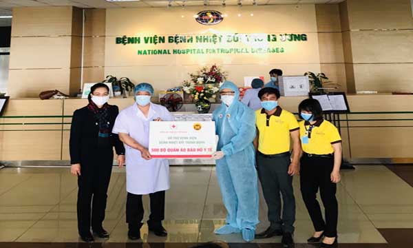 Cùng ngày Hội Chữ thập đỏ Việt Nam và đại diện Công ty Thời gian vàng đã đến trao cho Bệnh viện Bệnh nhiệt đới Trung ương 500 bộ quần áo bảo hộ y tế, số còn lại sẽ được trao cho các bệnh viện trên địa bàn Hà Nội và TP.HCM như: Bạch Mai, Xanh Pôn, Viện vệ sinh dịch tễ TƯ, Bệnh viện Chợ Rẫy, Bệnh viện dã chiến Củ Chi…