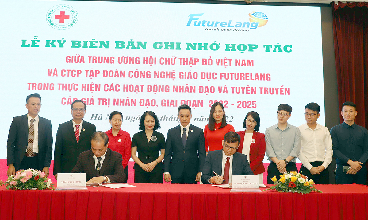Hội Chữ thập đỏ Việt Nam và Bộ Y tế ký kết chương trình hợp tác với Công ty cổ phần Tập đoàn công nghệ giáo dục FutureLang trong thực hiện các hoạt động và tuyên truyền các giá trị nhân đạo, giai đoạn 2022 – 2025