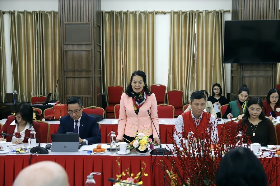 Chủ tịch Hội Chữ thập đỏ Việt Nam Bùi Thị Hòa phát biểu tại Hội đàm.