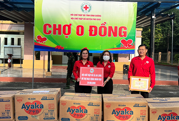 Thực hiện chương trình Tháng Nhân đạo năm 2022, từ đầu năm đến nay, Hội Chữ thập đỏ huyện Phú Giáo đã tổ chức 5 phiên “Chợ 0 đồng” và đã trao gần 1.000 phần nhu yếu phẩm cho người dân có hoàn cảnh khó khăn, với tổng kinh phí khoảng hơn 400 triệu đồng.