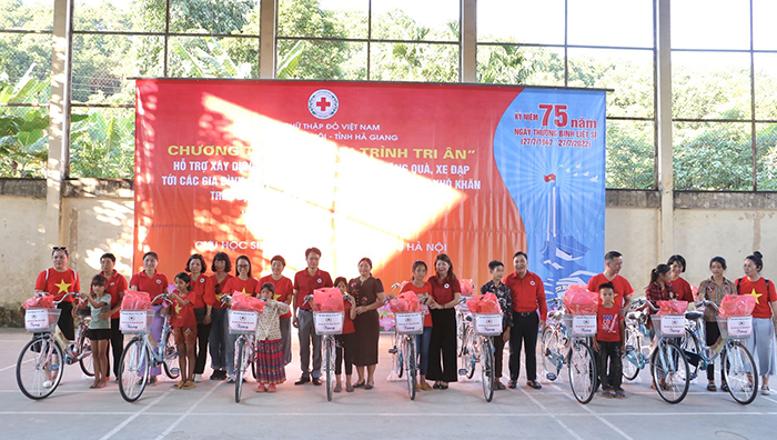 Từ ngày 11-14/7/2022, Đoàn công tác Hội Chữ thập đỏ thành phố Hà Nội do ông Đào Ngọc Triệu- UVTV Hội Chữ thập đỏ Việt Nam, Chủ tịch Hội Chữ thập đỏ Thành phố làm Trưởng đoàn cùng cán bộ, hội viên Chữ thập đỏ Thành phố; Hội Chữ thập đỏ các quận, huyện, thị… tổ chức “Hành trình tri ân” dâng hương tưởng niệm các anh hùng liệt sỹ, tri ân, trao tặng nhà Chữ thập đỏ và tặng quà, xe đạp… tới các gia đình chính sách, gia đình có hoàn cảnh khó khăn quận Bắc Từ Liêm và tỉnh Hà Giang.